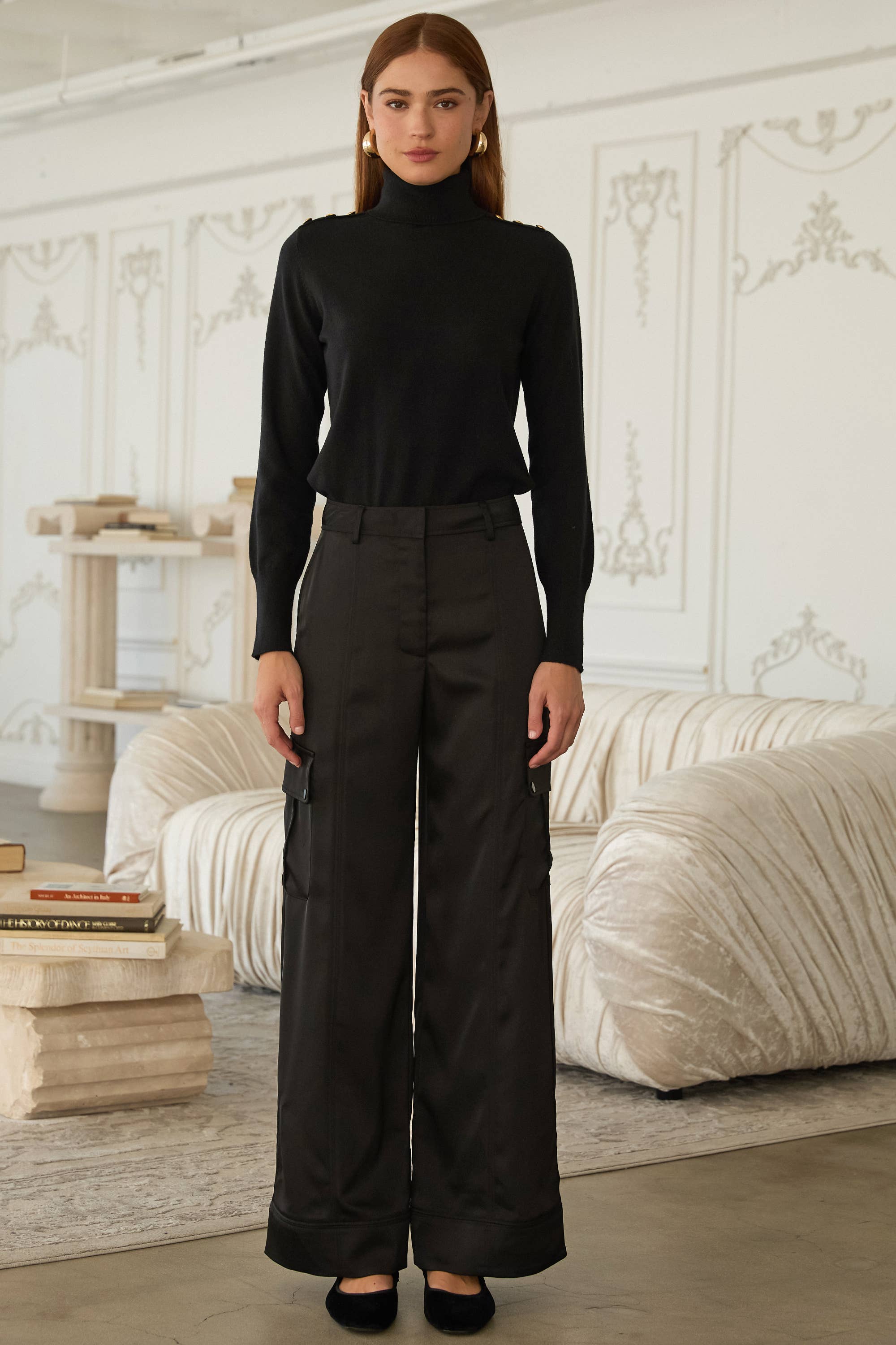 Skies are blue | Long Sleeve Turtleneck Sweater with Button Detail