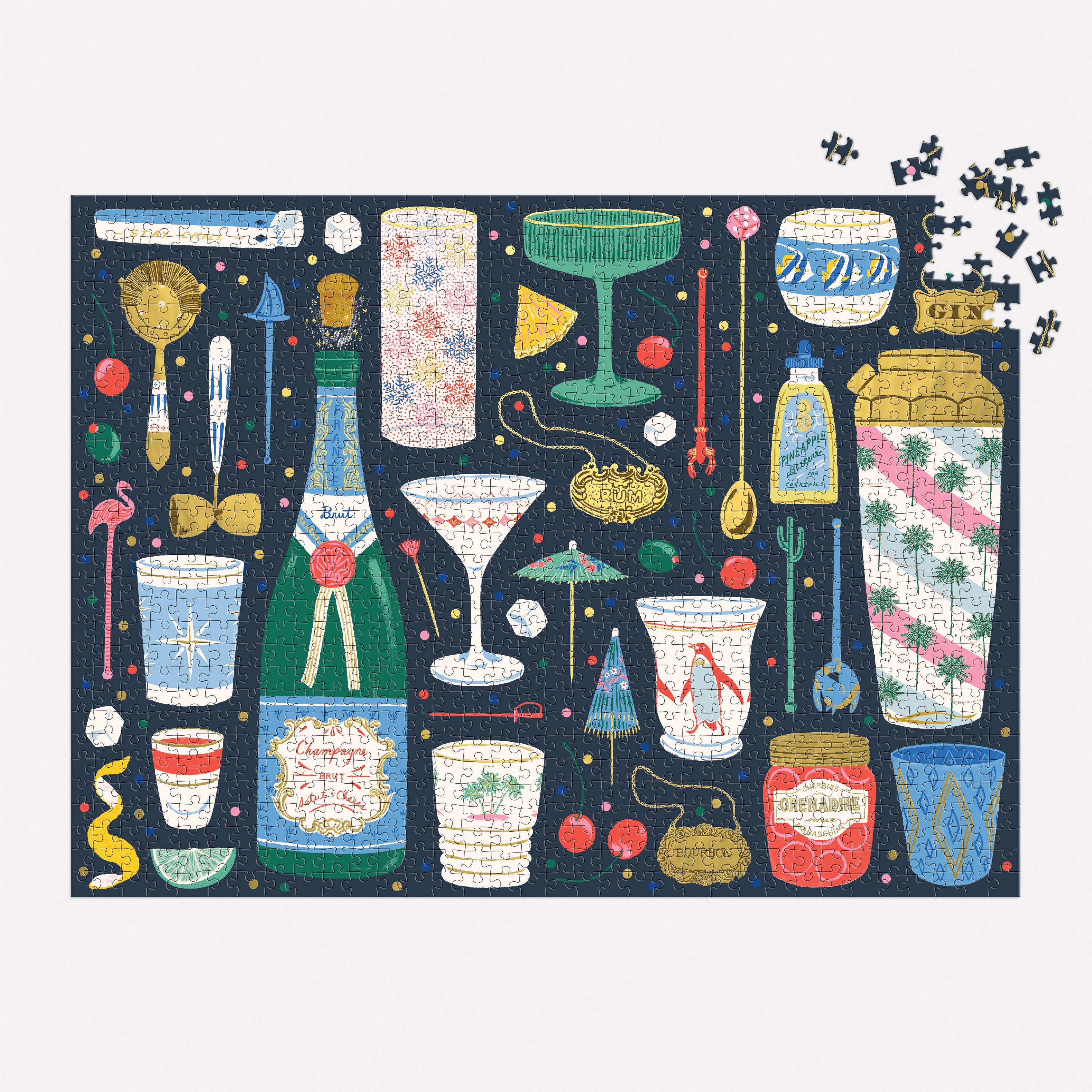 1000 PIECE PUZZLE – Merry Mixer 1000 Piece Puzzle by Galison is a medley of merry and festive barware all dressed for the holidays. This puzzle is just the right level of challenge for the whole family to join in on for hours of puzzling fun! The box includes an insert with the full puzzle image for reference.