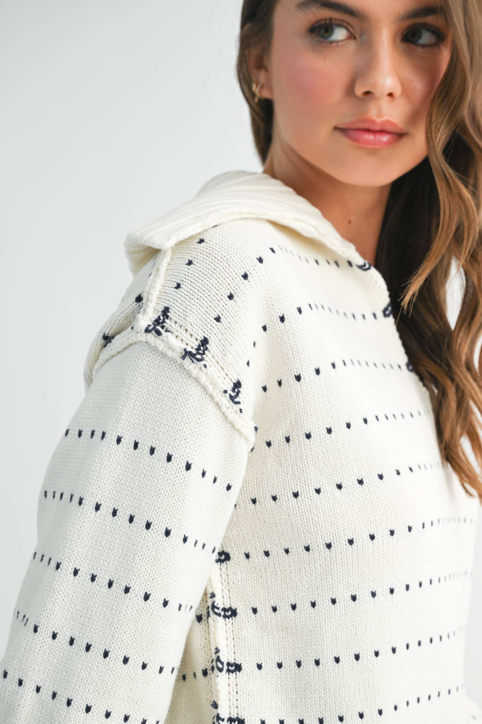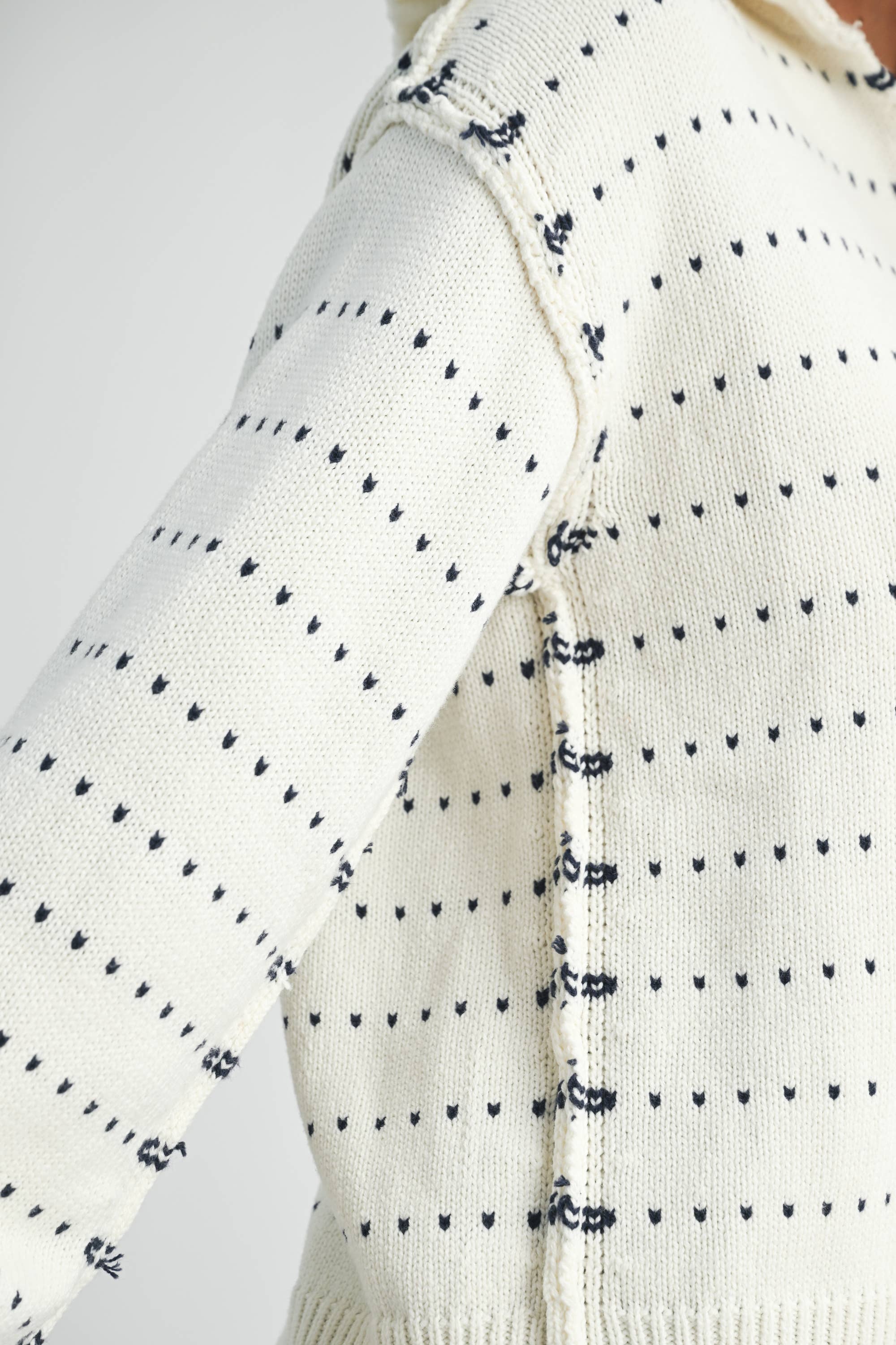 A cozy pullover with a playful twist—this knit features dainty heart-dot stitching throughout and a soft, slouchy collar for a lived-in feel. The relaxed fit and subtle texture make it the sweetest grab-and-go for your off-duty days.
