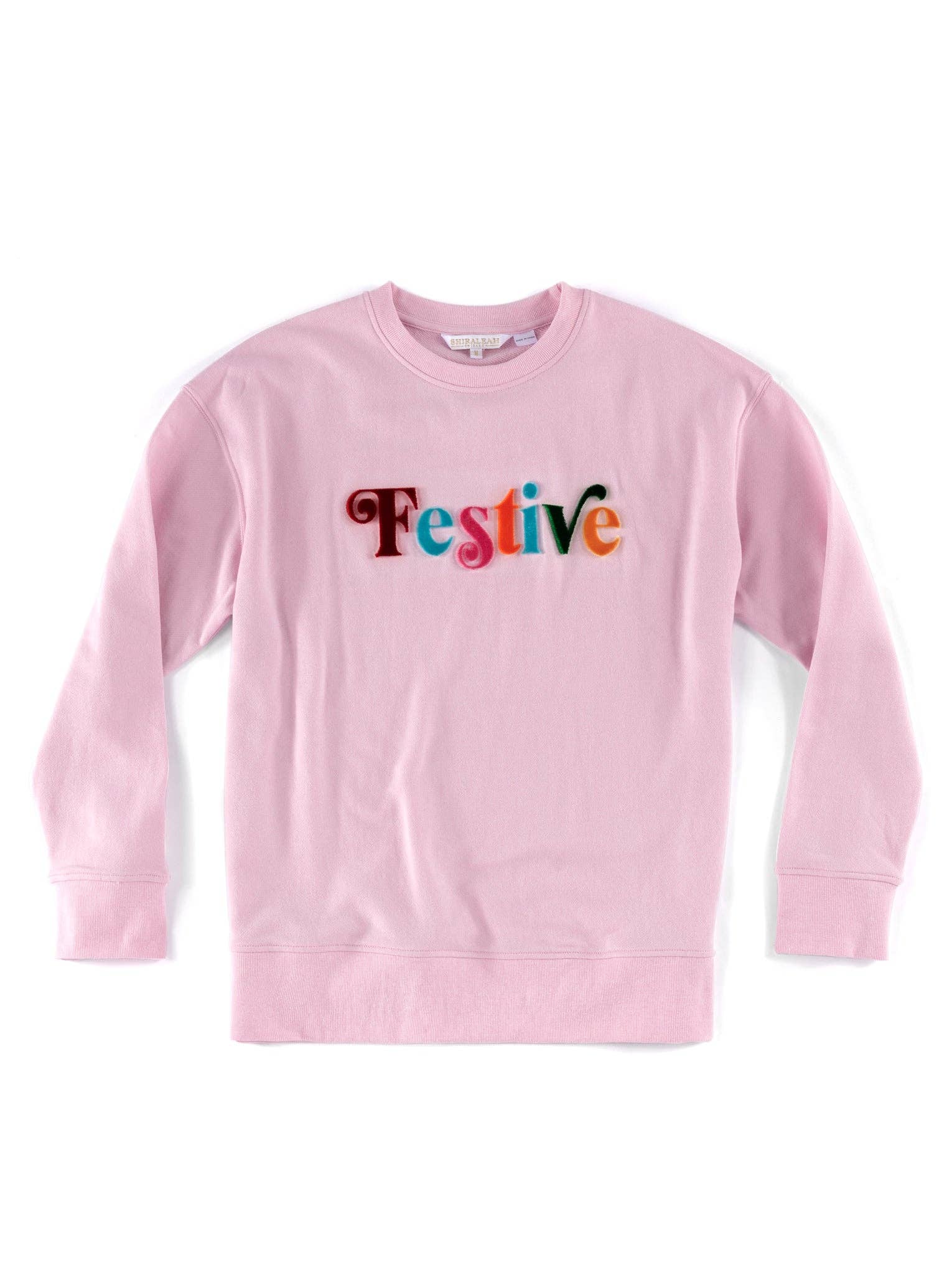 Creatures of comfort, rejoice! Whether you’re working from home or enjoying your Sunday slumber this holiday season, you will appreciate the collection of pieces from Shiraleah that make you feel good. The gray colored "Festive" Sweatshirt is made of lightweight cotton blend and the ultimate lounge piece. It also has multi colored text in bolded toothbrush embroidery lettering. The classic round neck, banded cuffs and hem allow this sweatshirt to have the perfect fit. * Color: Blush Material: Cotton And Polyester * Machine Wash Cold, Gentle Cycle, Tumble Dry Low, Do Not Bleach * Made In China * Vegan * 04-88-341