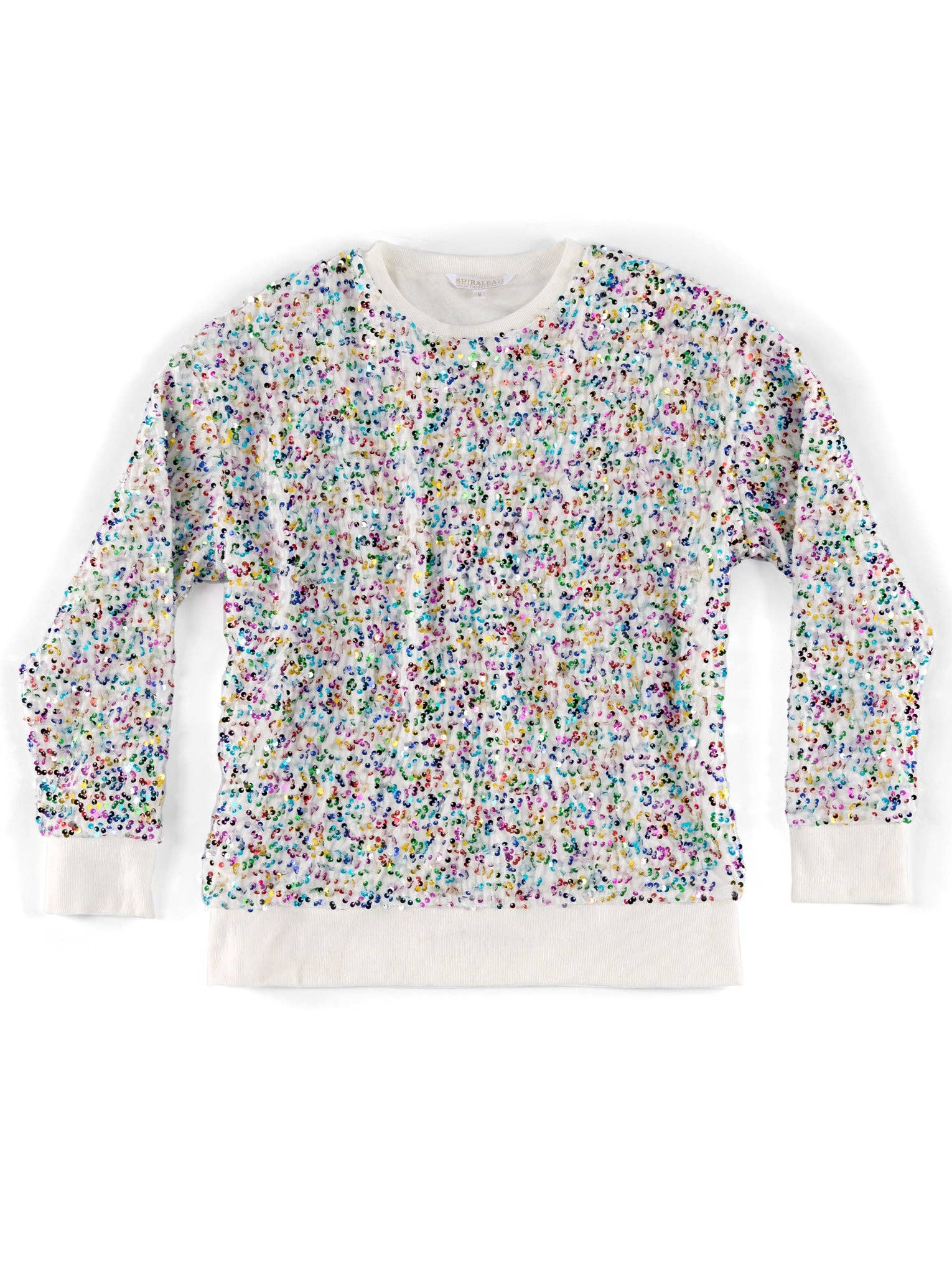 Creatures of comfort and chicness rejoice! Whether you’re out on the town or at a holiday party, you will appreciate the collection of pieces from Shiraleah that make you feel good. The white colored sweatshirt is made of lightweight cotton blend and has all over multi color sequins and it is the perfect piece to add a fun touch to your outfit this holiday season. The classic round neck, banded cuffs and hem allow this sweatshirt to have the perfect fit.